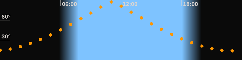 | Höchster Stand (Kulmination) | 11:04 Uhr (h = 87,4°) |