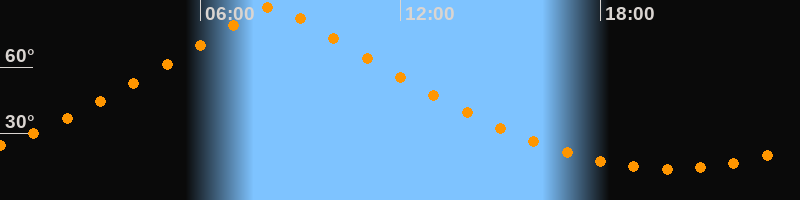 | Höchster Stand (Kulmination) | 08:10 Uhr (h = 87,4°) |