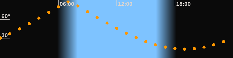 | Höchster Stand (Kulmination) | 07:03 Uhr (h = 87,4°) |