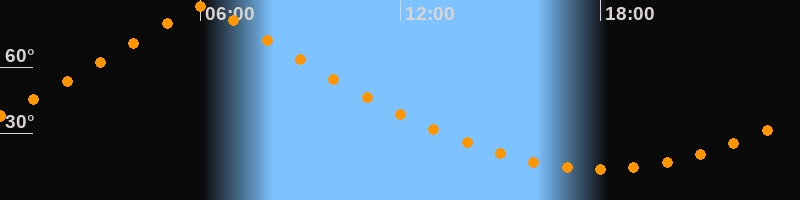 | Höchster Stand (Kulmination) | 06:04 Uhr (h = 87,4°) |