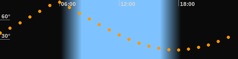 | Höchster Stand (Kulmination) | 05:48 Uhr (h = 87,4°) |