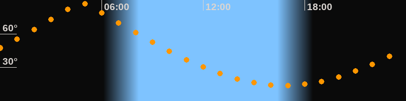 | Höchster Stand (Kulmination) | 04:49 Uhr (h = 87,4°) |
