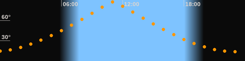 | Höchster Stand (Kulmination) | 11:05 Uhr (h = 87,4°) |