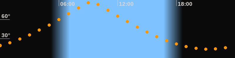 | Höchster Stand (Kulmination) | 09:18 Uhr (h = 87,4°) |