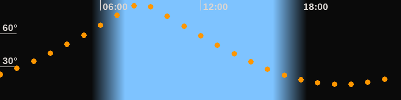 | Höchster Stand (Kulmination) | 08:27 Uhr (h = 87,4°) |