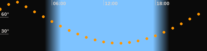 | Höchster Stand (Kulmination) | 01:46 Uhr (h = 87,4°) |