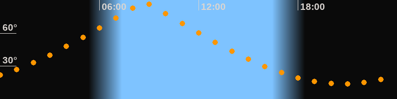 | Höchster Stand (Kulmination) | 08:43 Uhr (h = 87,4°) |
