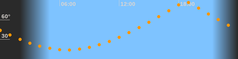 | Höchster Stand (Kulmination) | 18:43 Uhr (h = 87,4°) |