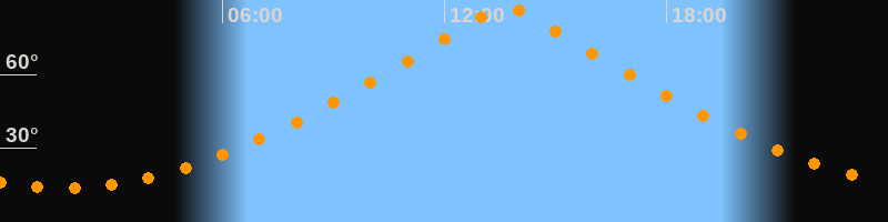 | Höchster Stand (Kulmination) | 13:40 Uhr (h = 87,4°) |