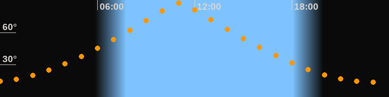 | Höchster Stand (Kulmination) | 11:03 Uhr (h = 87,4°) |