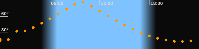 | Höchster Stand (Kulmination) | 09:47 Uhr (h = 87,4°) |