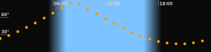 | Höchster Stand (Kulmination) | 08:25 Uhr (h = 87,4°) |