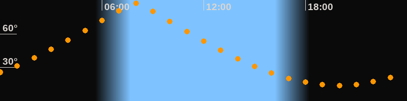 | Höchster Stand (Kulmination) | 07:57 Uhr (h = 87,4°) |