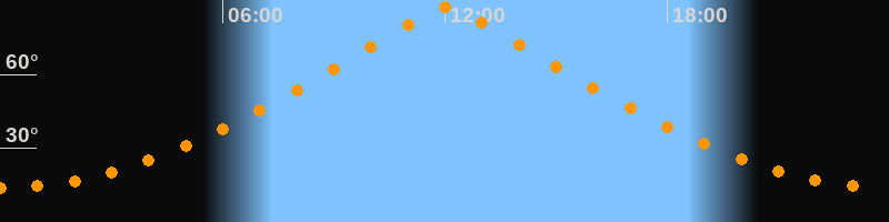 | Höchster Stand (Kulmination) | 12:03 Uhr (h = 87,4°) |