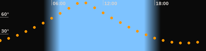 | Höchster Stand (Kulmination) | 09:32 Uhr (h = 87,4°) |