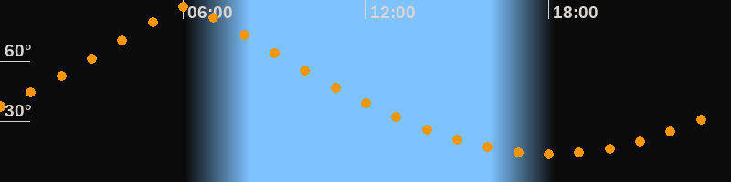 | Höchster Stand (Kulmination) | 06:08 Uhr (h = 87,4°) |