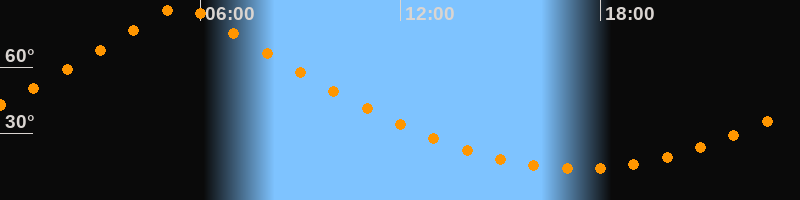 | Höchster Stand (Kulmination) | 05:25 Uhr (h = 87,4°) |