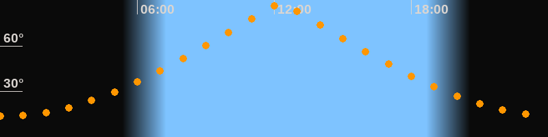 | Höchster Stand (Kulmination) | 12:16 Uhr (h = 87,4°) |