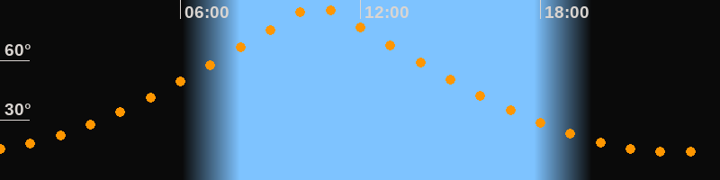 | Höchster Stand (Kulmination) | 10:33 Uhr (h = 87,4°) |