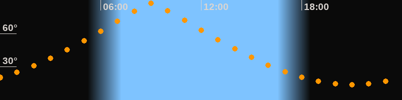 | Höchster Stand (Kulmination) | 09:02 Uhr (h = 87,4°) |