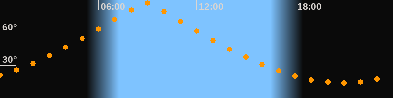 | Höchster Stand (Kulmination) | 08:54 Uhr (h = 87,4°) |