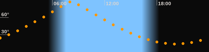 | Höchster Stand (Kulmination) | 08:11 Uhr (h = 87,4°) |