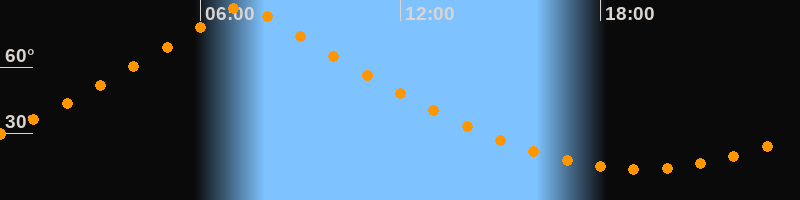 | Höchster Stand (Kulmination) | 07:16 Uhr (h = 87,4°) |