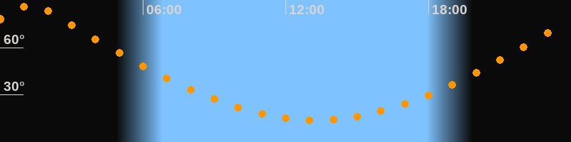 | Höchster Stand (Kulmination) | 01:18 Uhr (h = 87,4°) |