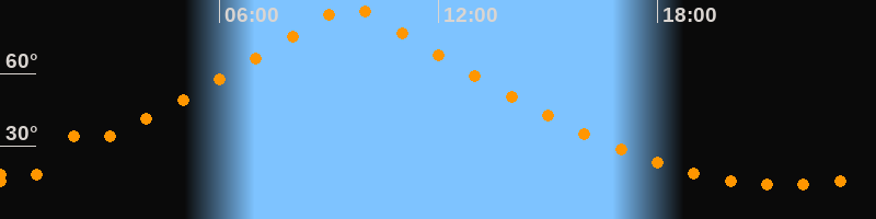 | Höchster Stand (Kulmination) | 09:34 Uhr (h = 87,4°) |