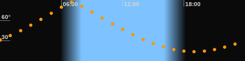 | Höchster Stand (Kulmination) | 07:05 Uhr (h = 87,4°) |