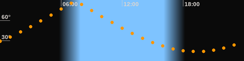| Höchster Stand (Kulmination) | 07:22 Uhr (h = 87,4°) |