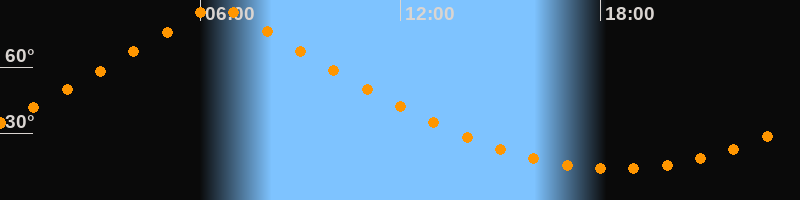 | Höchster Stand (Kulmination) | 06:30 Uhr (h = 87,4°) |