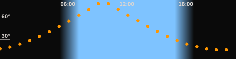 | Höchster Stand (Kulmination) | 10:30 Uhr (h = 87,4°) |