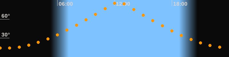 | Höchster Stand (Kulmination) | 12:25 Uhr (h = 87,4°) |