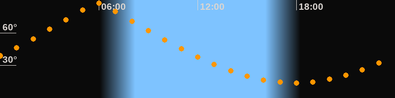 | Höchster Stand (Kulmination) | 05:55 Uhr (h = 87,4°) |