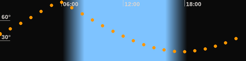 | Höchster Stand (Kulmination) | 05:47 Uhr (h = 87,4°) |