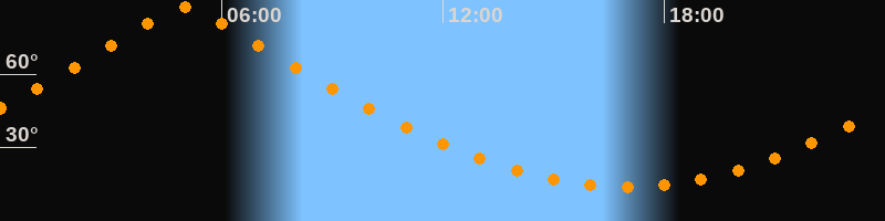 | Höchster Stand (Kulmination) | 05:00 Uhr (h = 87,4°) |