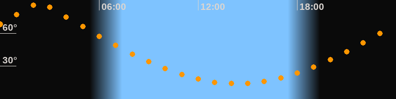 | Höchster Stand (Kulmination) | 02:23 Uhr (h = 87,4°) |