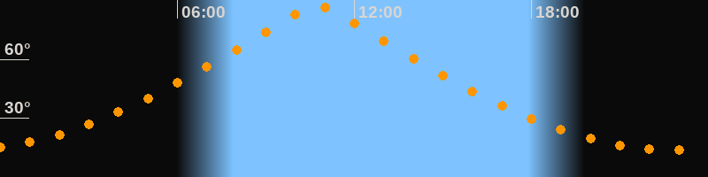 | Höchster Stand (Kulmination) | 10:44 Uhr (h = 87,4°) |