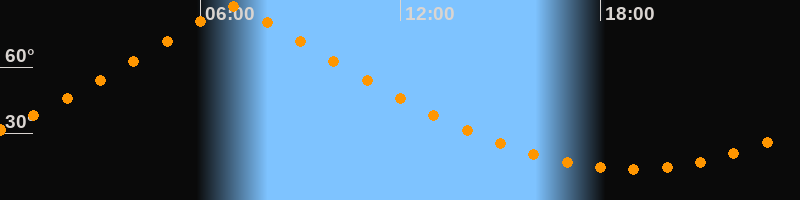 | Höchster Stand (Kulmination) | 06:59 Uhr (h = 87,4°) |