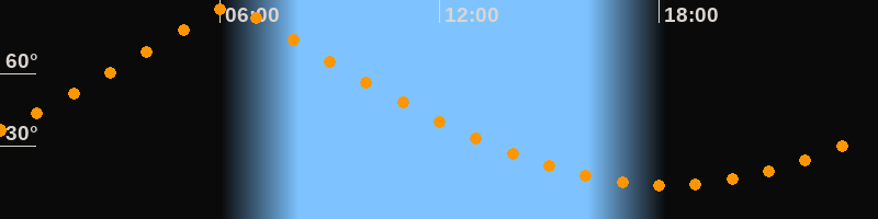 | Höchster Stand (Kulmination) | 06:16 Uhr (h = 87,4°) |