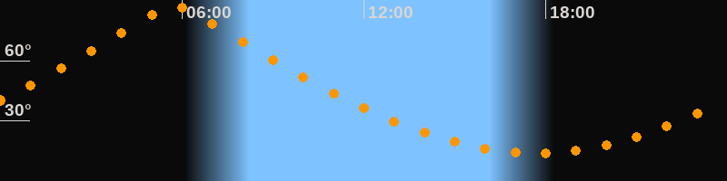 | Höchster Stand (Kulmination) | 05:44 Uhr (h = 87,4°) |