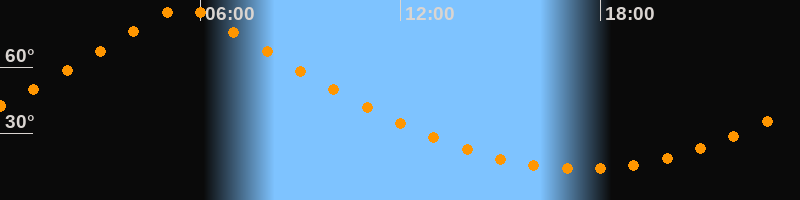 | Höchster Stand (Kulmination) | 05:28 Uhr (h = 87,4°) |