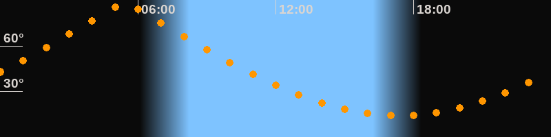 | Höchster Stand (Kulmination) | 05:24 Uhr (h = 87,4°) |