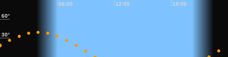 | Aufgang | 21:54 Uhr im Osten (αAz = 89,4°) |
