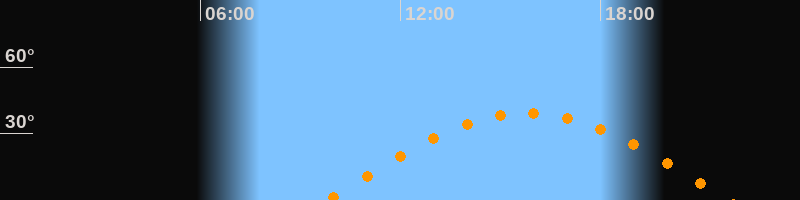 | Aufgang | 09:47 Uhr im Osten (αAz = 89,4°) |