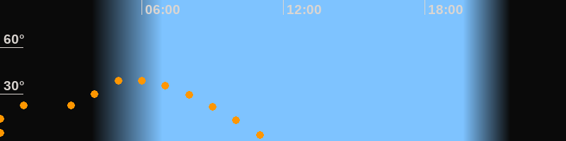 | Untergang | 11:29 Uhr im Westen (αAz = 270,6°) |