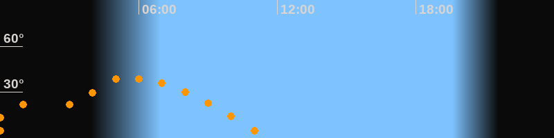 | Untergang | 11:34 Uhr im Westen (αAz = 270,6°) |
