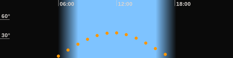 | Höchster Stand (Kulmination) | 11:37 Uhr (h = 39,2°) |