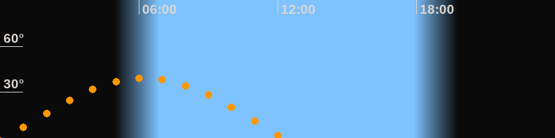 | Höchster Stand (Kulmination) | 06:13 Uhr (h = 39,2°) |